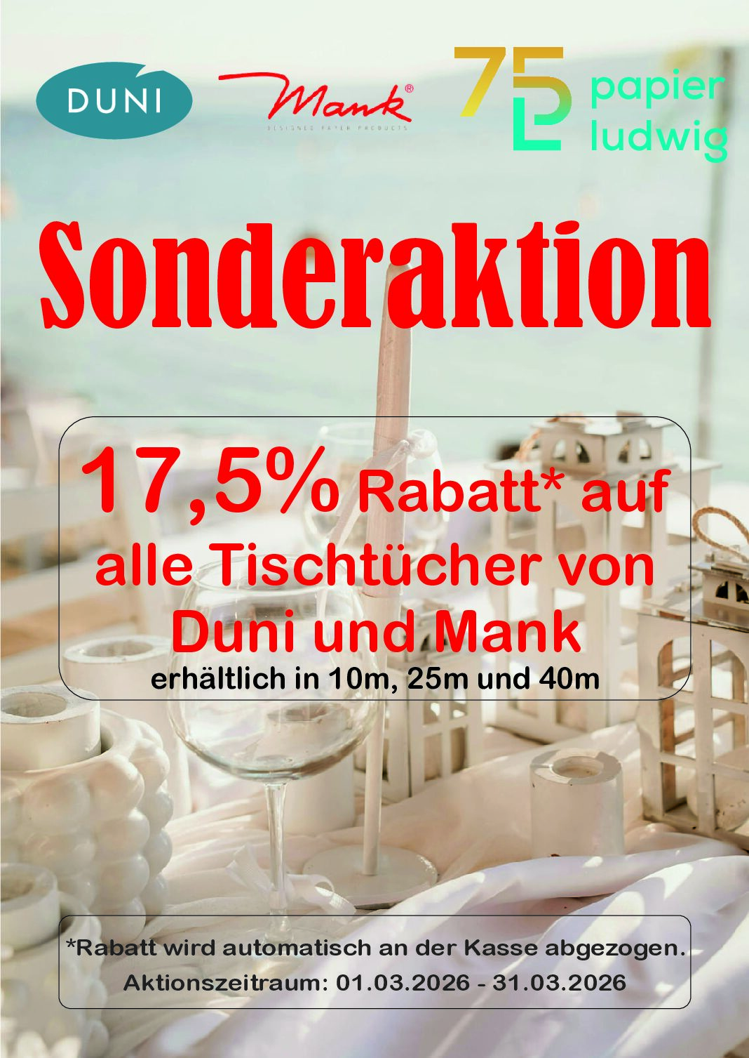 Wir bieten Ihnen regelmäßig Aktionsartikel und saisonbedingte Angebote. Ob Produktbereiche wie Schulbedarf & Studium, Tinte und Toner sowie alles rund ums Drucken, Reinigung und Hygiene, Umwelt-Produkte oder auch Verbrauchsmaterial wie Papier können wir Ihnen regelmäßig zu besonders günstigen Konditionen anbieten. Unser aktuellen Angebote umfassen: